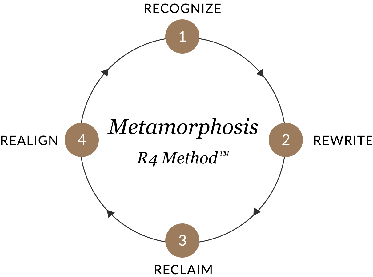 The four stages of the R4 Method, guiding you from awareness to embodiment.